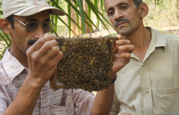 The training programme includes sessions with scientists to learn about the identification of the bees and butterflies using our mobile applications, 'Pollinators' and 'Bees and Butterflies', as field guides. The programme supports training on apiculture practices, plantation of bee flora, and maintenance of the beehives.
